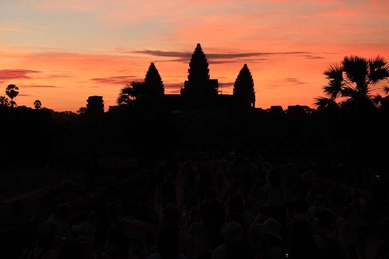 アンコールワットといえば、早朝のサンライズ鑑賞が人気です。ホテルの人などに聞けば、何時頃に出発したらよいかも教えてもらえます。しかしじっくりと鑑賞したい人は、教えてもらった時間よりも30分くらい早くシェムリアップを出発した方が良いです。とくに入場券を買っていない人は、窓口に並ぶ時間も余計にかかってしまいます。少し明るくなってからでもアンコールワットは十分に美しいですが、夜明け前からじっくりと見た方が、より神秘的で感動できると思います。よろしければ無職旅ブログhttp://musyokutabi.livedoor.biz/archives/51810151.htmlこちらで関連情報もご覧ください。
