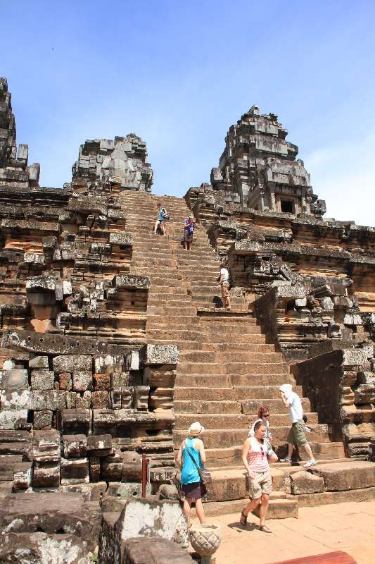 タ・ケウに行ったら、ぜひ寺院の上まで登りたいところです。しかし階段が急ということもあり、高所恐怖症の人はけっこう大変だと思います。私も階段に手を付きながら、よちよちと登りました。でも日中の日差しが強いので、階段はかなり熱くなっています。手を火傷してしまいました。ですので高所恐怖症の人は、軍手などを持って行くと、意外と役立つかもしれません。よろしければ無職旅ブログhttp://musyokutabi.livedoor.biz/archives/51810616.htmlこちらで関連情報もご覧ください。