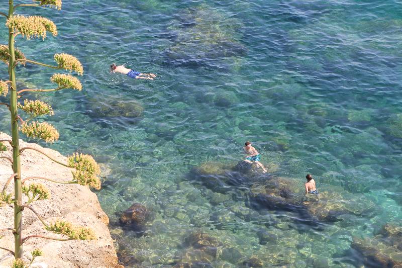 多くの船が停まっていて賑やかな雰囲気です。ボートトリップの営業も盛んでした。海水は透き通っているので、ボートの影が水底に写っている光景が美しかったです。港の先の埠頭では泳ぐこともできます。ビーチにはなっていませんが、ハシゴが付いているので利用しやすいです。おそらくは旧市街中心部から一番近い海水浴場だと思います。あまり人も多くないので、穴場かもしれません。ただライフガードなどはいないので、無理をしないように注意です。よろしければ無職旅ブログhttp://musyokutabi.livedoor.biz/archives/51835882.htmlこちらもご覧ください。
