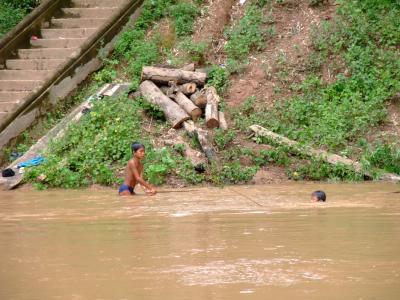出航後、1時間半上流に向かうと、酒造りで有名なBan Xang Hai(サンハイ村)に到着