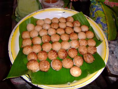 観光客の喜捨用にもち米売ってますが、このもち米が炊きたてでとーーーーても熱いッ!!