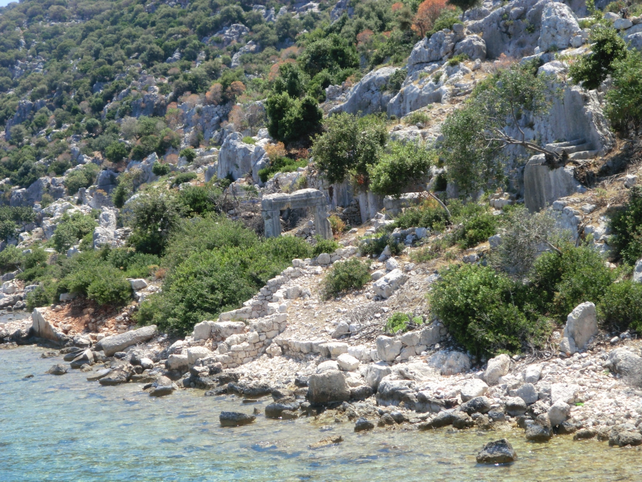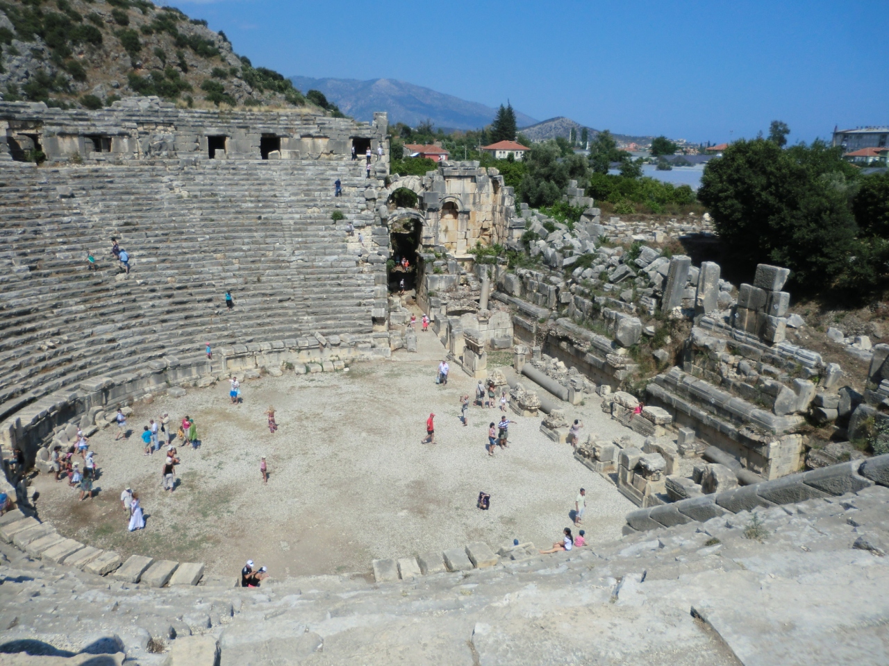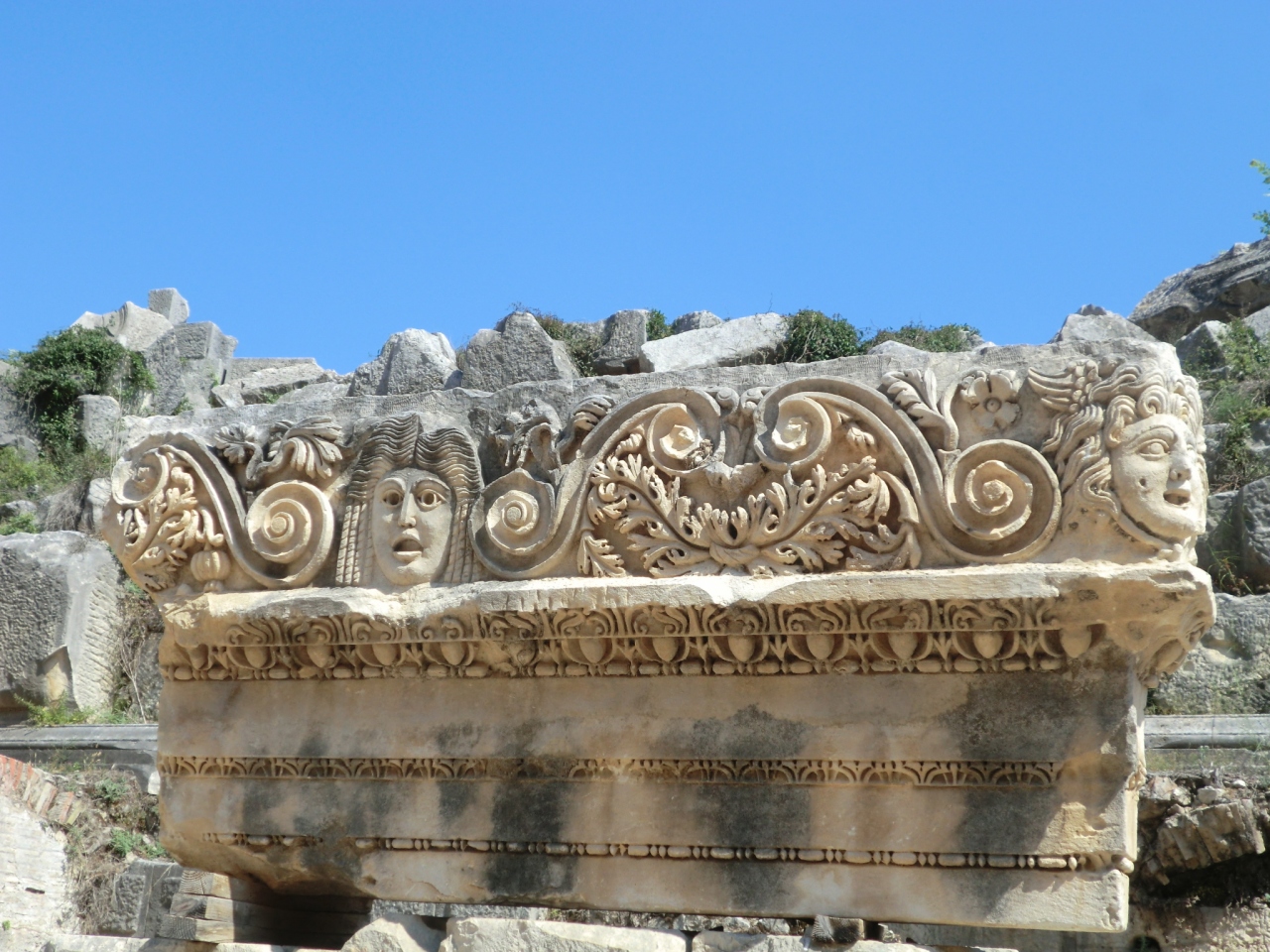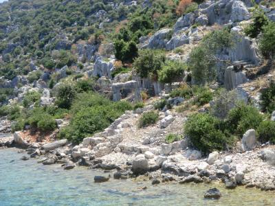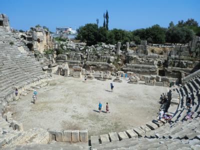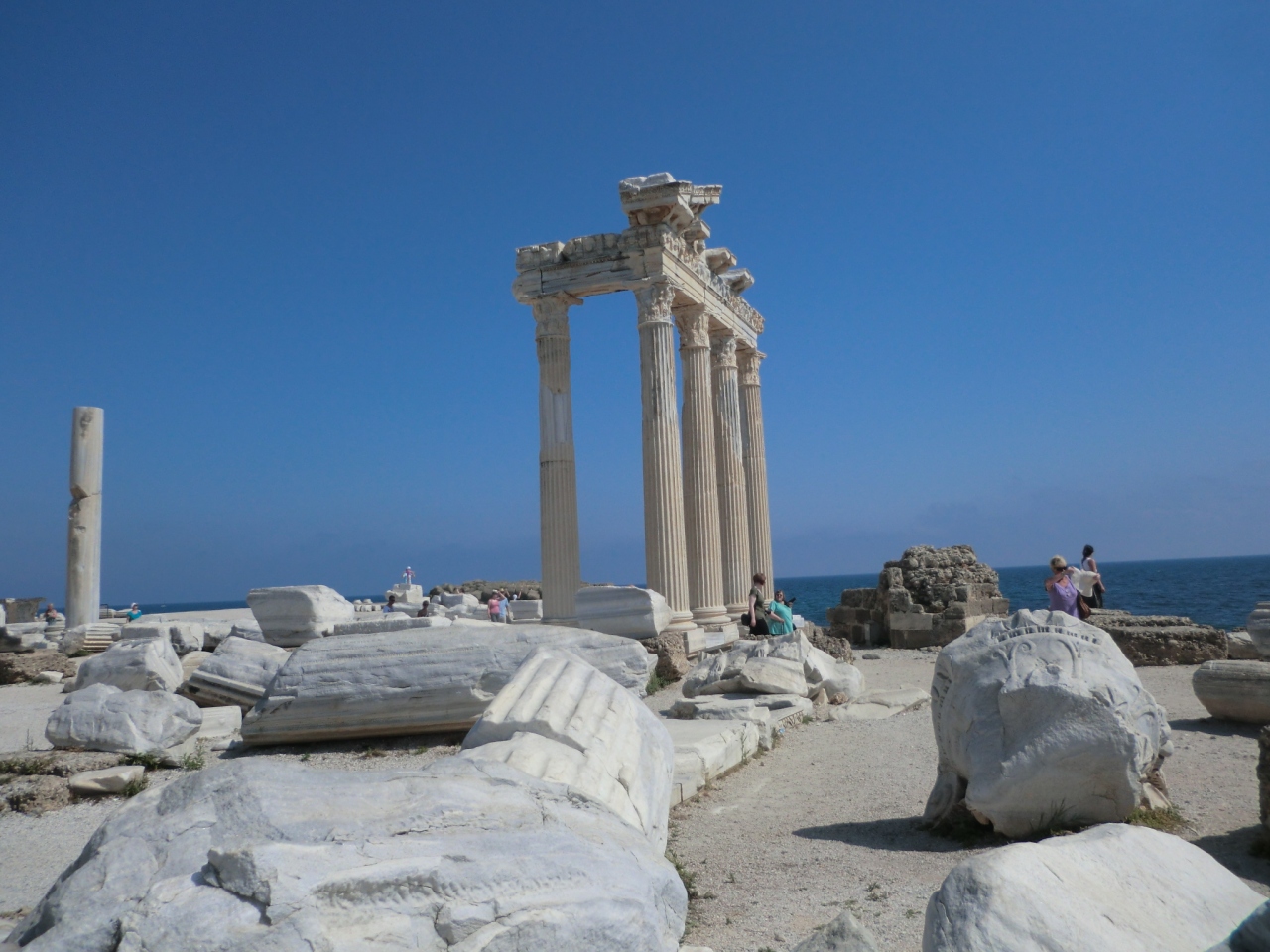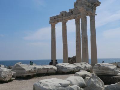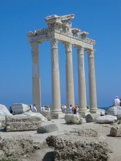 アンタルヤからのツアー(ペルゲ、アスペンドス、スィデなど)に参加し、観光しました。リマン通りの突き当たりは海岸。多くのボートが並んでいましたが、左折し進むとアポロン&アテナ神殿。(トルコも地震の多い国と聞いていましたが)津波が来たら、どうなるのかな? と思える場所にある神殿。華麗、荘厳、・・・。美しい神殿です。