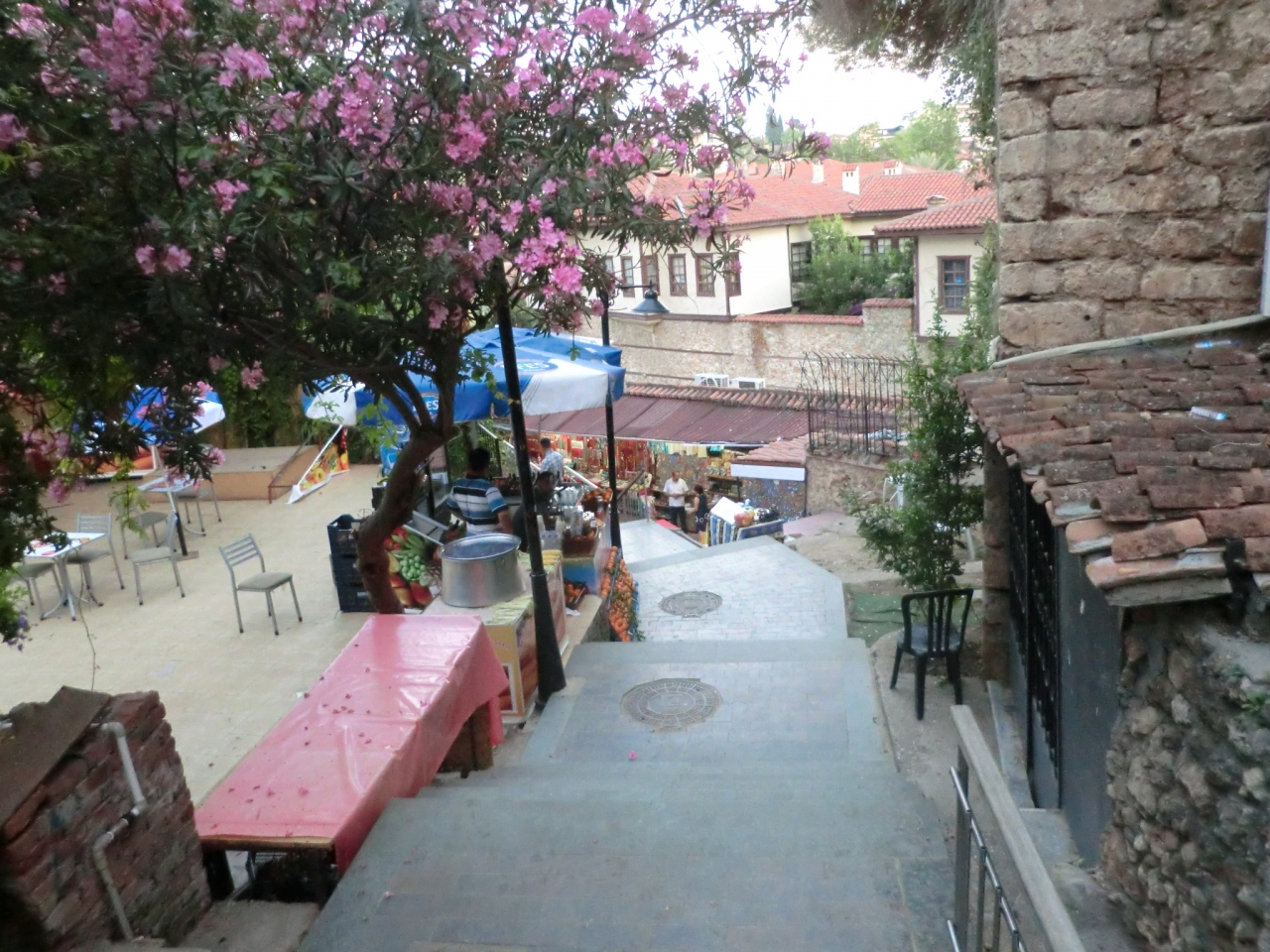 銅像・県庁に向かって右側の道路(Atmali Sok.)を県庁裏方向に進みます。公園といっても、日比谷公園のイメージではなく、木々の間に多くのレストランがあるイメージです。