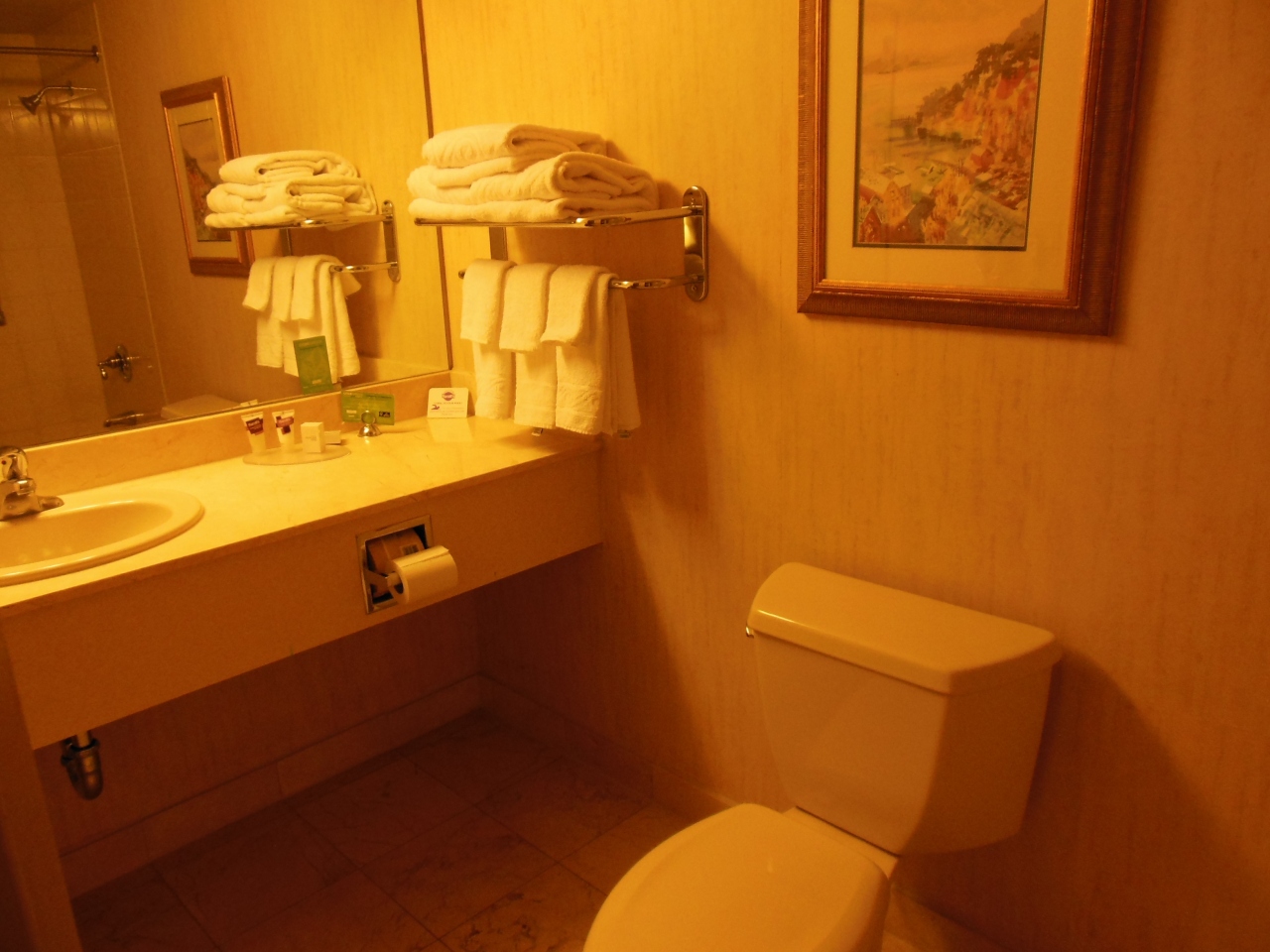 ホテルハラス(Harrah’s)は「地球の歩き方」によると中級ホテルです。ツアー代金に含まれていましたので、値段はわかりませんが、同旅行で宿泊したWynn Encoreの比較からすると1泊1室5000円以下くらいかな?