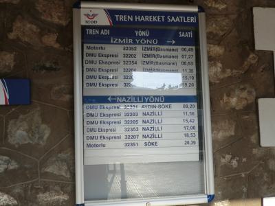 1日6便しかないが、空港からセルチュクへ行くには鉄道が最も便利。しかし、この鉄道(トルコ国鉄)の時刻表がなかなかWebで見つけられず。最終的には何とかそれらしきものは見つけましたが、PDFファイルであり、本当に最新の時刻表であるか不安でした。