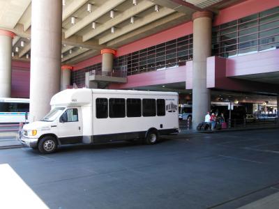 マッカラン空港から市内のホテルへは空港シャトルバスを利用。
