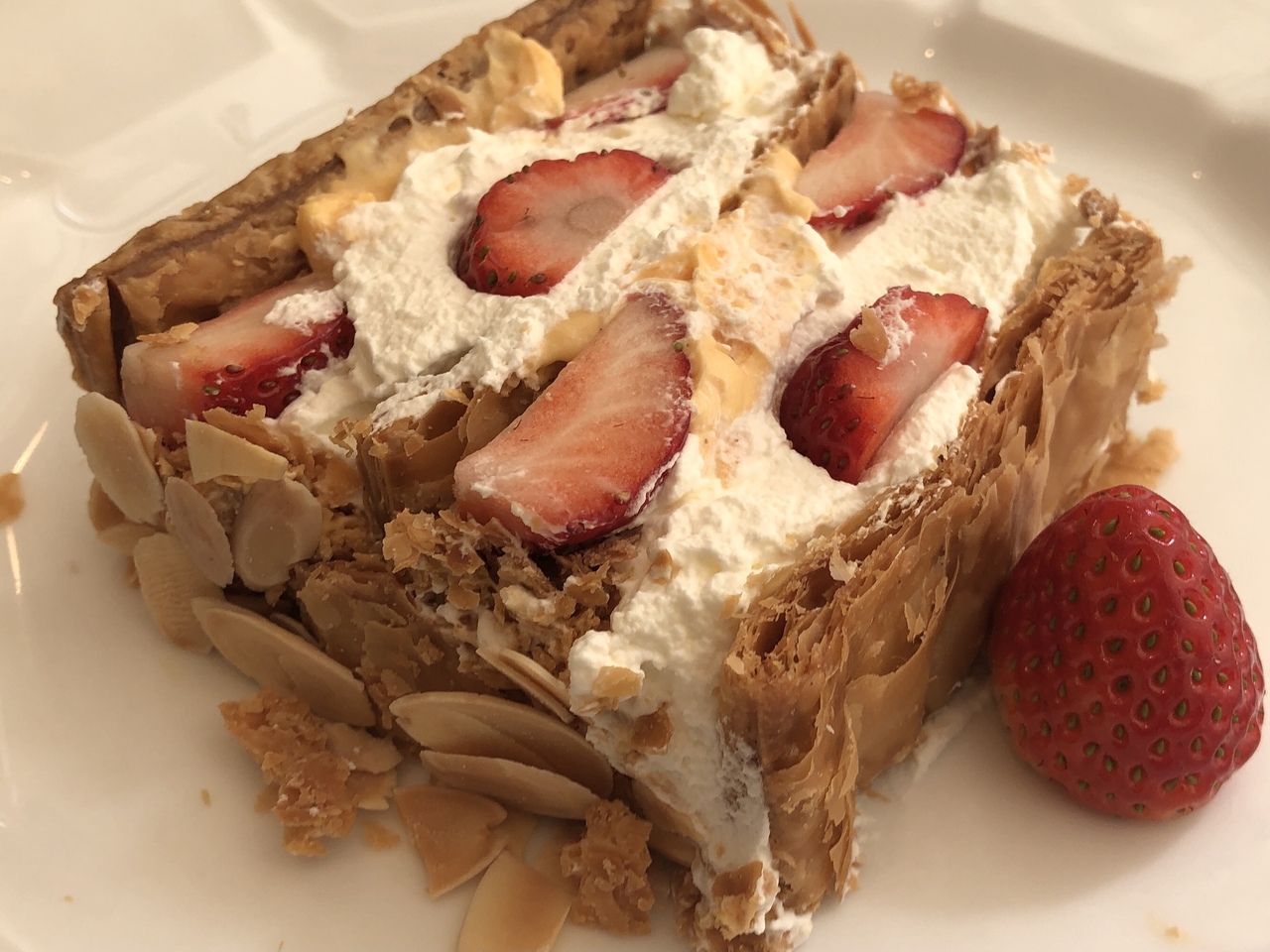 いちごのナポレオンパイ、コース料金にプラスでデザートとして選べます。キハチといえばナポレオンパイ!これが無性に食べたくなる時があるんです。パイがサックサクなんですよ。クリームも甘すぎず固さもちょうどよくて品がいいお味です。美味しかった~