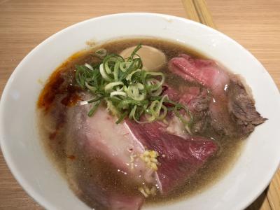 休日でしたが時間を外して14時ごろだったためか、それほど並ばずに席につけました。お台場店限定の和牛ラーメンを食べました。値段は1400円とラーメンにしてはかなりいい値段です。ラーメンの上の和牛はかなりレアな状態で提供されます。卓上にあるトッピングの玉ねぎスライスはシャキシャキで美味しく気に入りました。