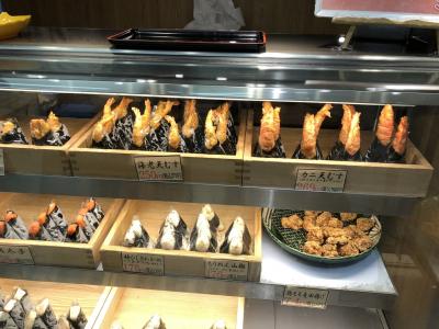 新橋駅の地下街にあります。エビ天むすを購入。作ってからかなり時間が経っているためか、ごはんが冷たくて乾き気味で固くなっていたのが残念でした。えび天は文句なく美味しいだけに残念なところ。えび天のほかにカニかま天もあります。