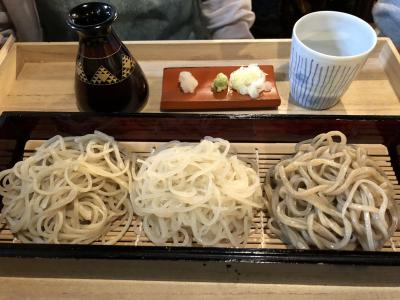 初めて来たとき、美味しいお蕎麦に感激し、良いお店を見つけた!と思い2度目の来店。前回は日曜のお昼時で並んだので今回は11時の開店と同時にお店に入りました。開店15分前に駐車場に着いたのですがすでに駐車場には何台も車が停まっていてびっくり。人気の高さが伺えます。開店と同時に自分たちを含め何組かが続々と店内へ。今回は3種類の蕎麦が食べ比べ出来るセットにしました。どの蕎麦も味わい深くて美味しかったです。