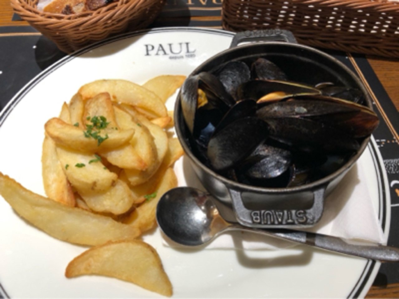 5種類のバゲットのスライスがカゴに入って出てきます。お代わり自由で食べ放題です。メインをひとつ選んで前菜のありなしによって値段が異なる2つのコースがありました。ムール貝&フリットを選びました。ムール貝は旬なので美味しかったです。大人気の日曜限定のモーニングビュッフェもぜひ来てみたいです。