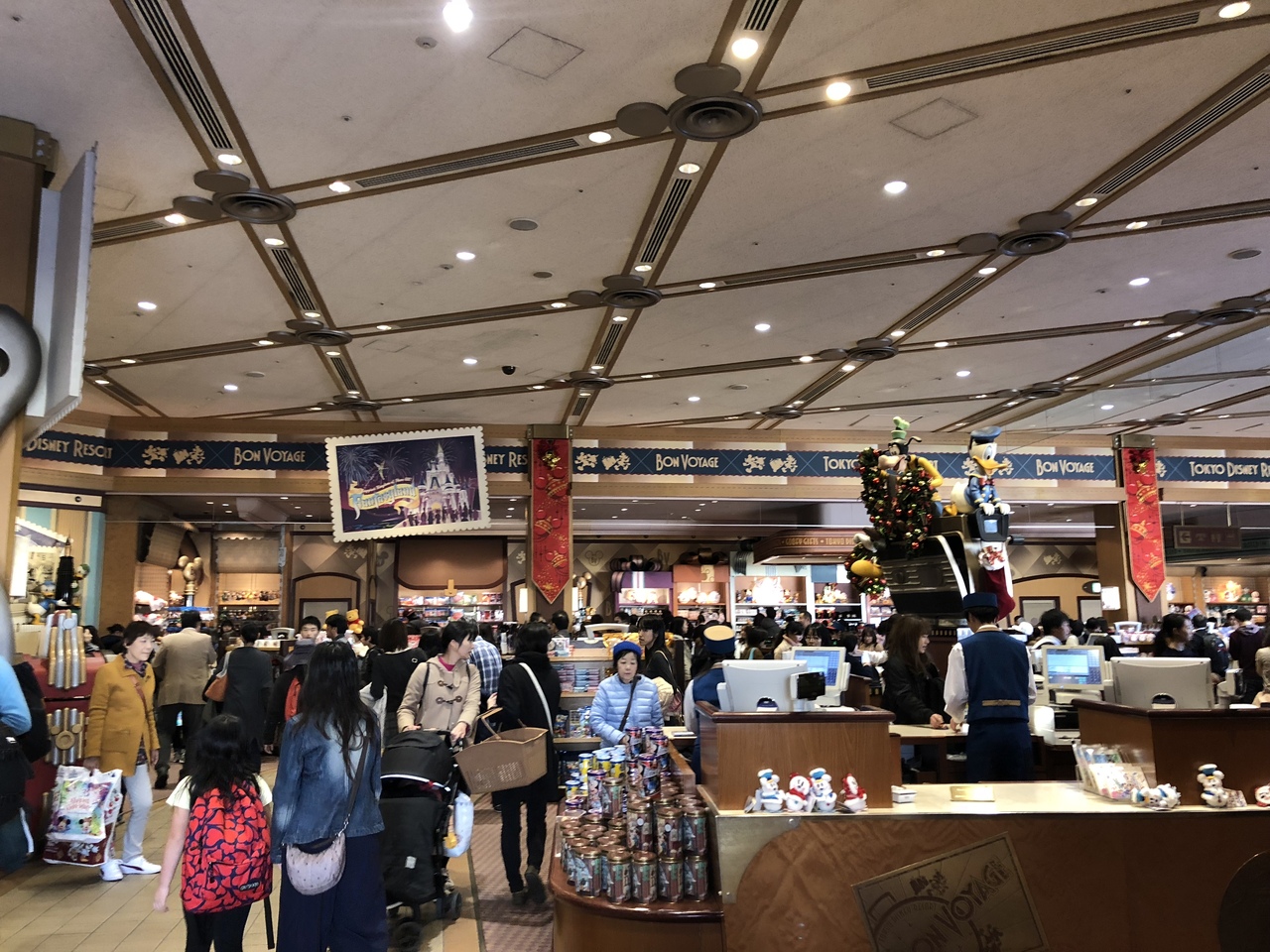 舞浜駅からディズニーランドへ行くまでの途中にあります。日曜の午後1時ごろに来ました。休日のためかさすがに店内は混み合っていました。パークに入らなくてもパークに売っているグッズなどが買えるので重宝しています。残念ながらダッフィグッズは置いていません。