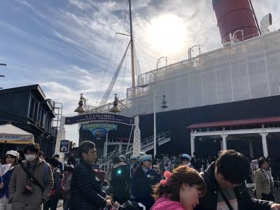 アメリカンウォーターフロントエリアのSSコロンビア号近くにある屋台のお店です。骨つきソーセージを買って食べました。アツアツでピリッとブラックペッパーが効いていて美味しかったです。行列でしたが回転が速くてすぐに順番が回ってきました。