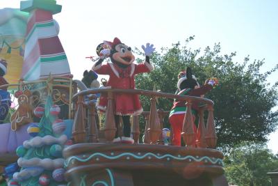 クリスマスのパレードは一年の行事の中でも一番華やかで好きです。キャラクターたちもクリスマスの衣装で登場し、とても可愛らしい。パーク全体もクリスマスの飾り付けやオブジェがたくさんありファンタジーな空間に仕上がっています。