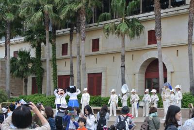 ディズニーシーのエントランスを入ったところでブラスバンドの演奏があり、ミッキーとミニーも登場しました。白と青のスーツ姿で爽やかでした。入り口だったので、先を急ぐ感じになってしまい、慌ただしくゆっくり見られなかったのが残念でした。