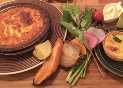 オフィス街にあるためかランチは混雑でした。ランチが1500円とちょっと高めでしたが値段以上に素敵なプレートが出てきました。オシャレな木のプレートに彩り鮮やかな野菜がきれいに盛り付けられています。メインを3種類から選べてラザニアにしました。ボリュームもたっぷりでした。外観もオシャレだし、内装も緑いっぱいの空間です。水天宮駅から徒歩数分です。