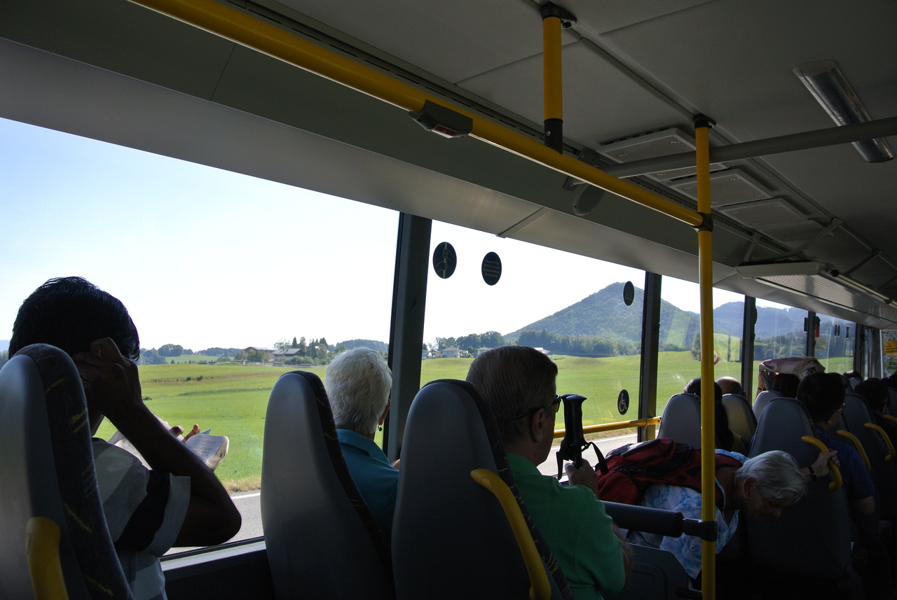 ザルツブルグから150番バスでザンクトギルゲンまで来られます。片道6.9€でした。ザンクトギルゲンのバス乗り場は行きも帰りもどちらの方面へも一ヶ所ですので迷わず安心です。ヴォルフガング湖の遊覧船のりばはここから坂を下って5分くらいで湖畔に出られますので、わりと近いです。