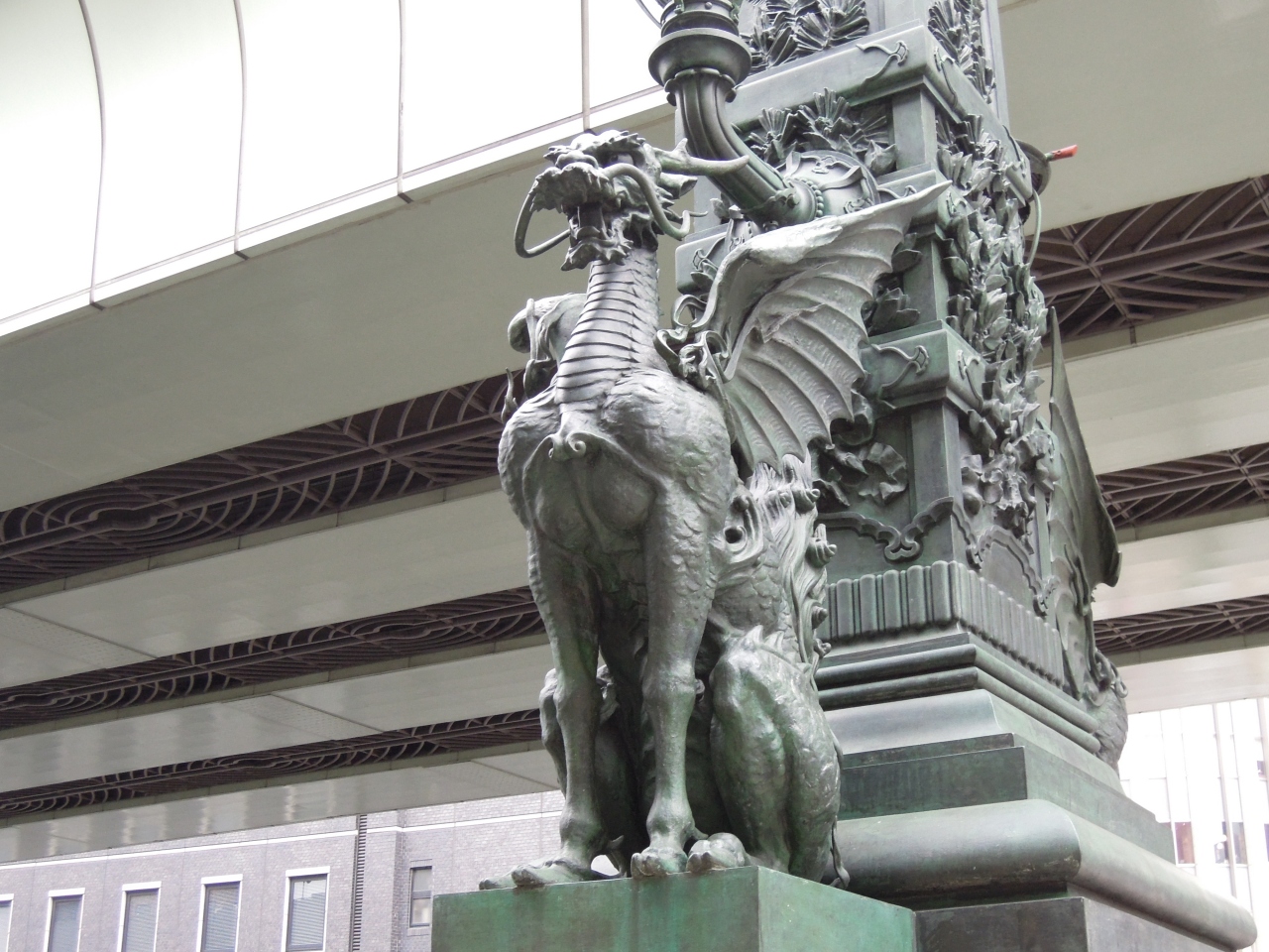 半蔵門線の三越前駅出口を出てすぐ橋が見えます。橋のちょうど真上には首都高が走っています。首都高が上に走っていなければもっと橋全体の見晴らしも良いはずなのに残念です。麒麟像ももっと存在感が出るはずなのに…。現在の石造二重アーチ橋に架け替えられたのは明治44年なので100年以上も前に今の姿だったことにびっくりです。昔から変わらず今も人の往来が激しく日本の中心といった感じです。