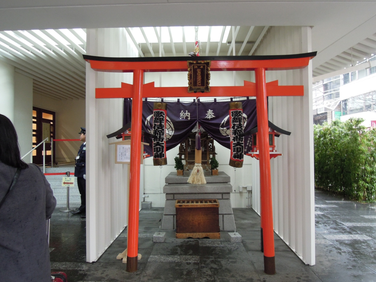 歌舞伎座1階正面の右手側にもあります。もうひとつ歌舞伎座に直結する東銀座駅のエスカレーターを上ったところに歌舞伎稲荷大明神はあります。御朱印はここではなく歌舞伎座タワー5階のお土産処楽座でもらうことができます。書置きしたもののみですがレジのところでもらえます。