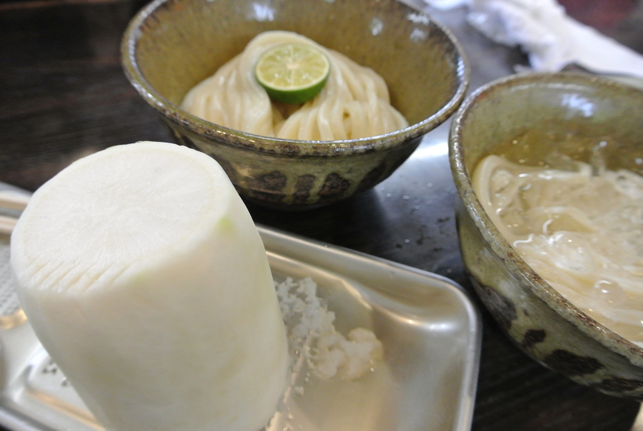 GWに訪れました。少しだけ並び店内へ。一人一品の注文しなければなりません。びっくりするほどの大きな大根!全部すりおろし、大根おろしの海にうどんが見えなくなりましたが、たっぷりの大根おろしにうどんがよく合い、予想以上に美味しかったです。