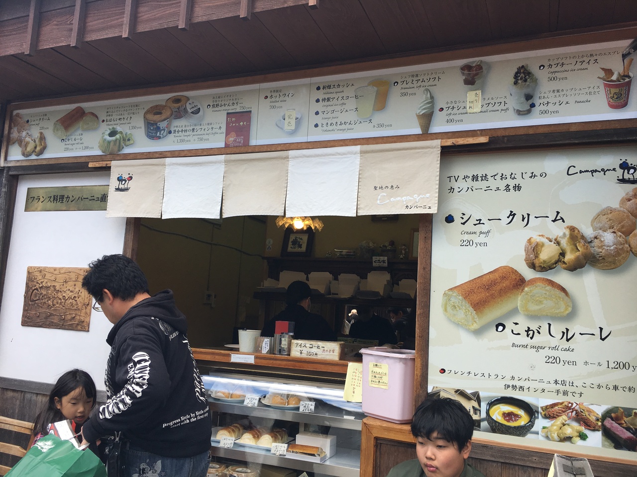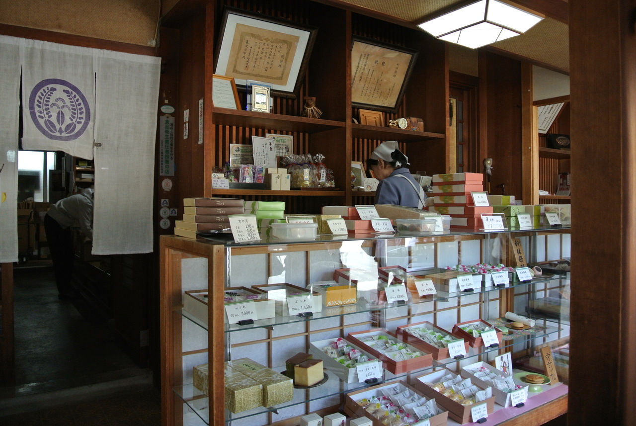 赤福本店などがあるおかげ横町の賑わっている中心地を少し抜けたところにあります。老舗の和菓子屋さんで季節の和菓子やカステラなどありますが、中でも名物なのは「利休饅頭」。和菓子は購入しませんでしたが、ソフトクリームを頂きました。お店の端の一角に座って食べられるスペースがありました。