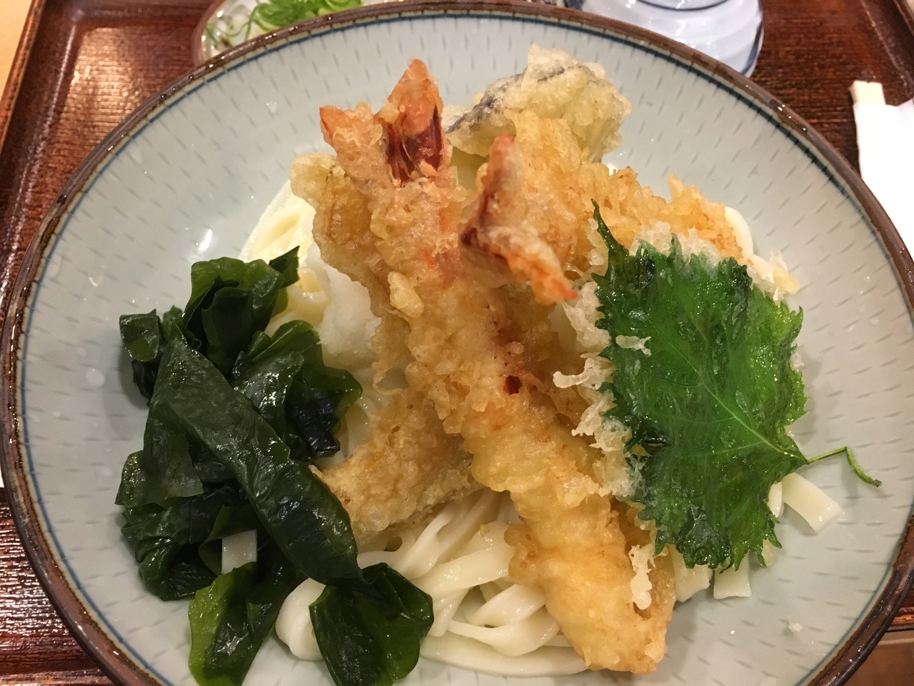 名古屋に来たらきしめんが食べたくなります。プレーンなきしめんを食べるべきか悩みましたが、もっとガッツリ系を胃が求めていたので海老おろしきしめんにしました。天ぷらは海老2本にナスにかぼちゃにシソと豪華です。天ぷらは衣が薄めでサクサクでした◎