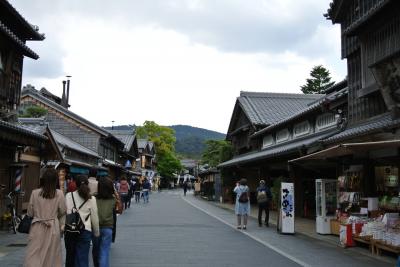 おはらい町の出口方面(伊勢神宮寄り)はとりわけ混雑しています。日曜はお昼近くともなれば人の波でした…。ともあれ何度来ても飽きない、とても活気があって楽しい場所です。食べ歩きできるフードも充実していて、本来の目的は参拝のはずなのですが、おはらい町に来る方が楽しみだったりします。