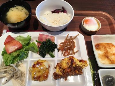 岡山駅からは地下直結で5分ほど、地上に出ずにフロントまで辿り着けます。地上からのホテル入り口は少々分かりにくいですが、フロントは5階、ビックカメラの上層部分がホテルになっています。朝食レストランは眺めもよく、ビュッフェの種類も和洋ともに豊富で、岡山グルメのえびめしなどもありした。