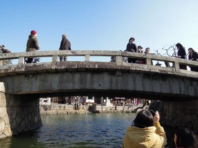 たぶん中国の旧正月と重なっていたのだと思います。まわりの観光客はほとんど中国人でした。冬なので緑が少なく景色は少し淋しい感じはしました。柳並木の美しい時に訪れたい場所でしす。岡山駅からは倉敷駅までは電車で15分、倉敷駅からここまでは歩いて15分ほどでした。