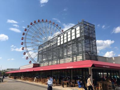 高速からだけでなく、一般道からもアクセス可能な大型サービスエリア。話題のトイレは豪華な内装でソファがあったりと貴族の館に来たようでした。こちらのシンボルとなっている観覧車は夜にはイルミネーションがとてもキレイです。
