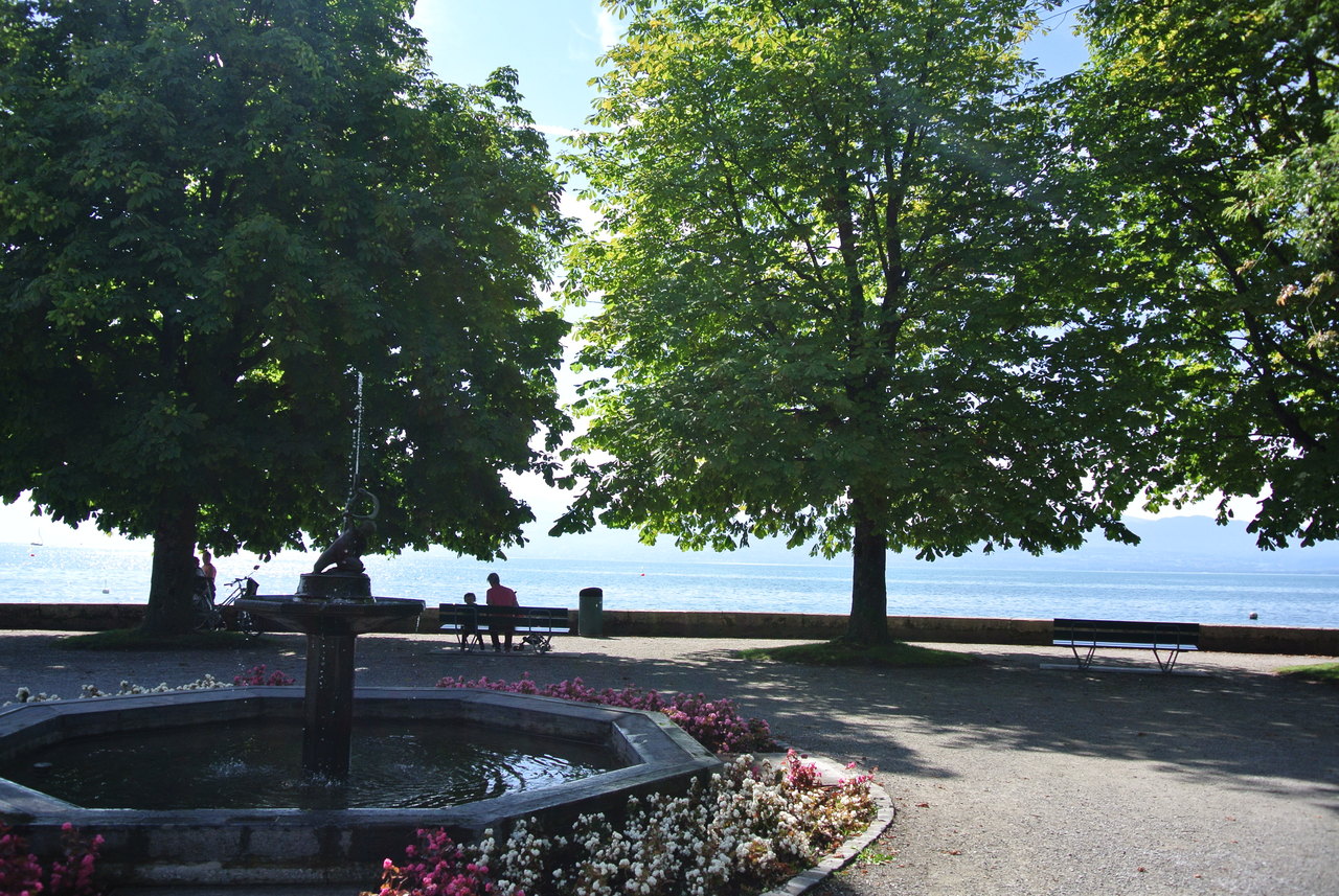モルジュ駅からはレマン湖に向かって歩いて行くと、15分くらいでたどり着きます。モルジュ城が公園のすぐそばにあるので、目印にして行かれると良いと思います。ヨーロッパの夏の日差しは強いですが、公園は緑がいっぱいで木陰やベンチもあり、レマン湖のプロムナード沿いを散歩しながら休憩に訪れるのもいいかと思います。8月でしたので、チューリップは見られず残念でしたが花がいっぱい咲いていました。