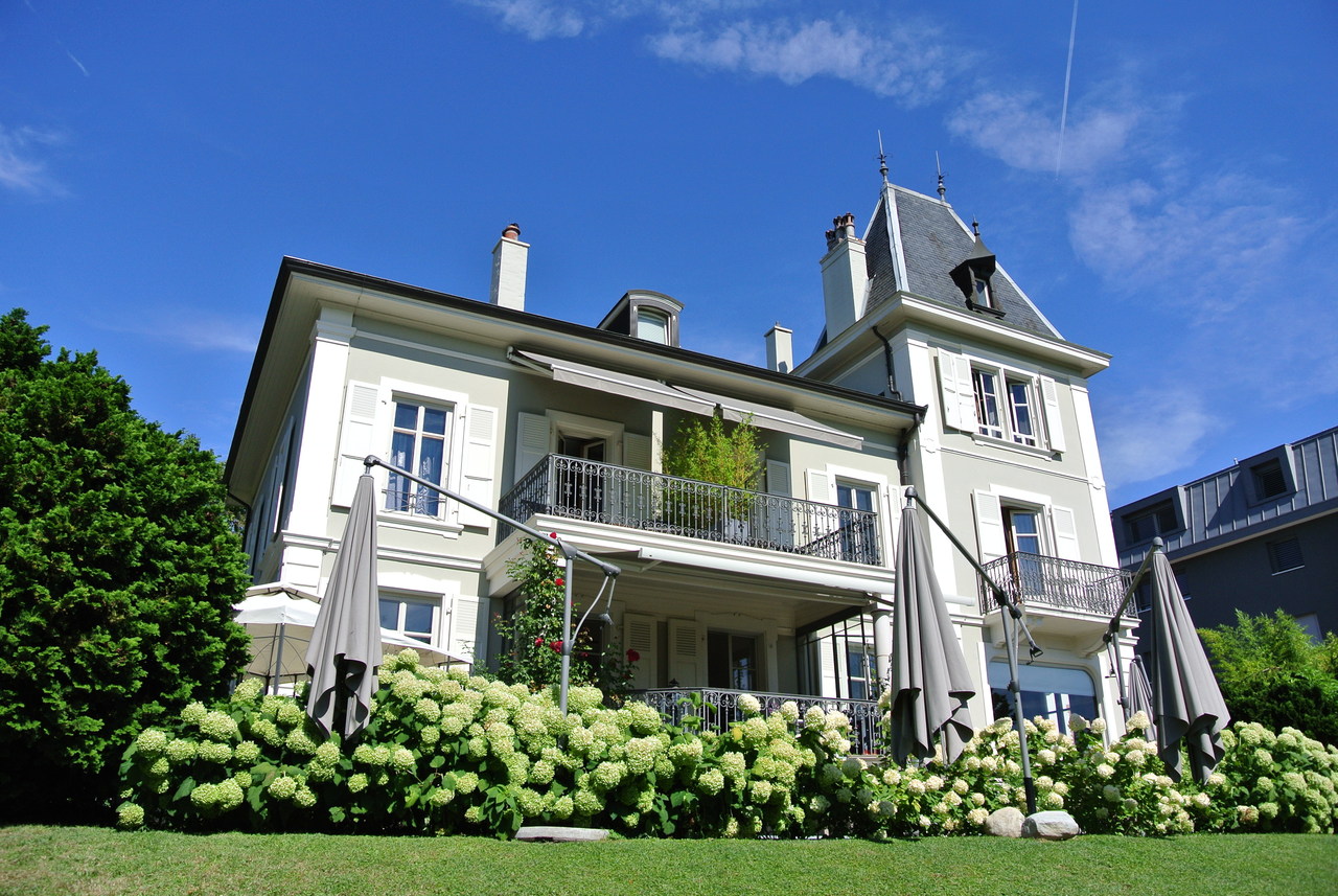 ストラヴィンスキーが住んでいた邸宅が今はホテルとして使われています。広々とした庭があり、バラなどたくさんの花が咲いていてとても素敵な空間でした。部屋は広くて可愛くて、窓からレマン湖や山が見渡せて、眺めは抜群です。モルジュは、近くのレマン湖周辺のローザンヌやヴヴェイなどに比べると小さな街なので、人が少なく落ち着いていて静かでとても良いところです。モルジュ駅からだと20分以上は歩くので、バスまたはタクシーで行かれると良いと思います。ホテルの目の前にバス停があり、モルジュ駅に向かうバスは10~15分に一本はあります。日曜でも30分おきにありました。