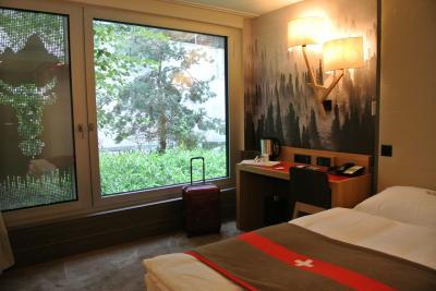ビジネスシングルルームに泊まりました。スーツケースを広げられる十分な広さで、ベッドはツインサイズ、部屋は清潔で綺麗で快適に過ごせました。ポットもあります。地下鉄のgrancy駅のすぐ側で、スーツケースがあっても移動が楽でした。ローザンヌ駅からも近く、とても便利な立地です。どの部屋のドアにもルームナンバーの表示がどこにもなく、自分の部屋がどこか分からずうろうろ探してしまいました。足元(フロアマット)に書いてありました。笑