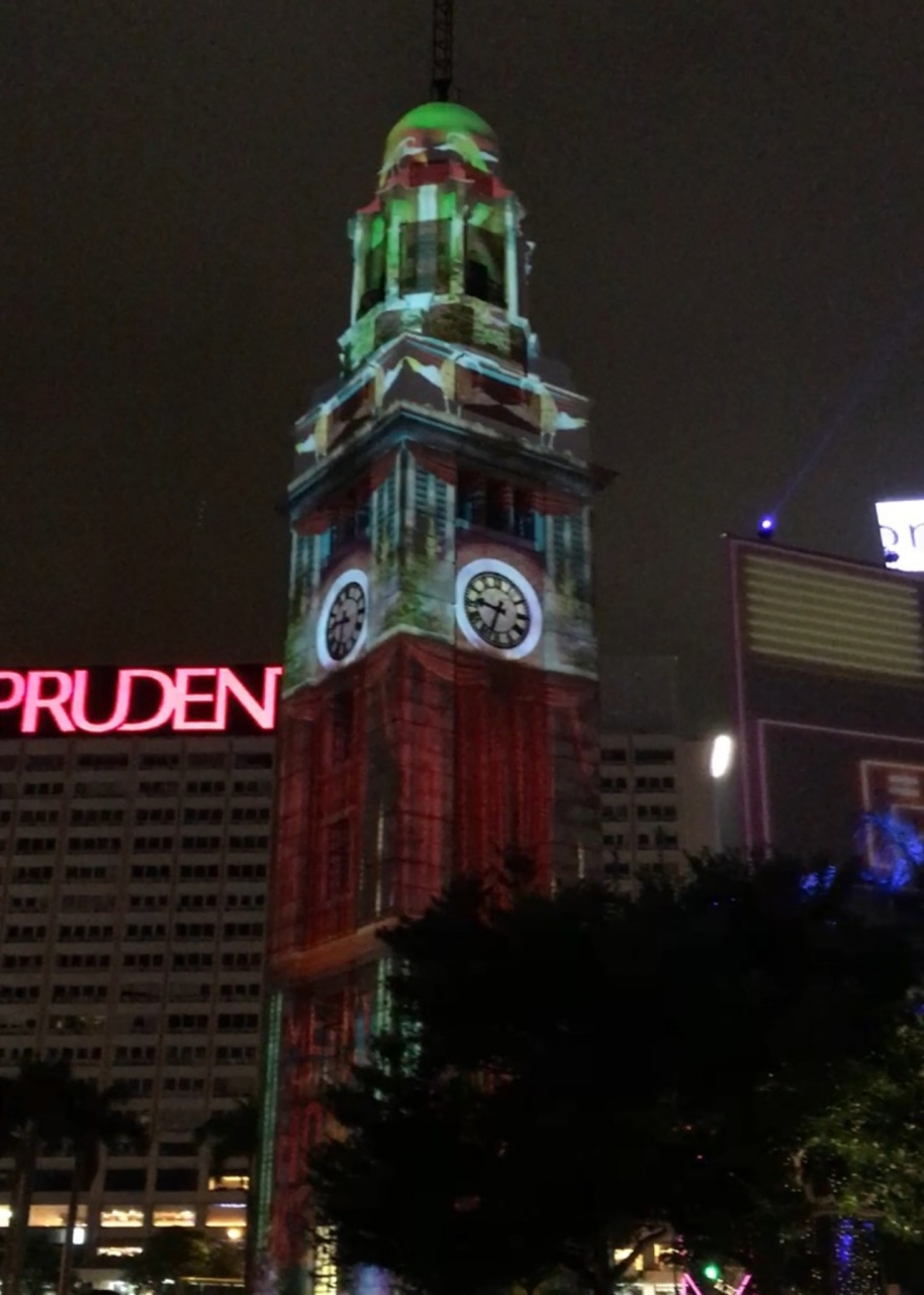 尖沙咀駅から歩いて、ビクトリアハーバーのすぐ側にあります。ヨーロッパ風の赤レンガの素敵な時計塔です。クリスマスに近かったので夜はクリスマスソングとともに時計塔はプロジェクションマッピングで彩られていました。