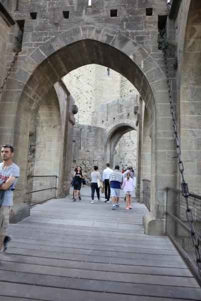 シテへのメイン入り口の門です。カルカソンヌを訪れる観光客はほぼこちらから出入りすることになると思います。カルカソンヌ駅からこのシテの入り口まで歩いておよそ30分ほどかかります。現実世界から中世の入り口への扉をくぐるようで、ロマンに溢れドキドキワクワクでした。
