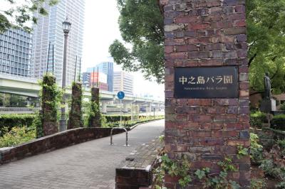 北浜からブラブラ歩いて難波橋を渡った先にありました。周りを見回すとビル群に囲まれていますが、都会の中にあることを忘れるぐらい落ち着いた素敵な空間です。6月だったのでバラはもうほとんど終わってしまって残念でした。