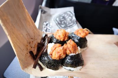 羽田空港の保安検査前にあるお弁当屋さん。朝早いフライトの時はたいていこちらでお弁当を買って機内に持ち込むことパターンが多いです。天むすを買って機内で食べました。5個入りで一つの大きさは小さいのですが、ボリュームがあって意外とお腹いっぱいになります。