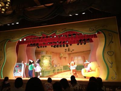 ダッフィーやミッキーたちのショーを見ながら食事することが出来ます。それぞれ約10分のショーが2つ、交互に上演されます。平日でランチ時間帯とは少し外れた10時半頃の利用でしたので、待ち時間ほとんどなく食事の注文や受け取り、座席への案内もスムーズでした。欲を言えば‥ショーはとても素敵ですがステージ音楽の音量をもう少し絞ってもらえたら‥と思いました。音に子どもがかなりビックリしてました、、。