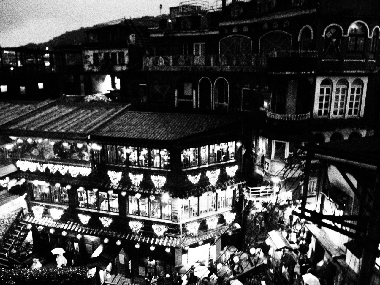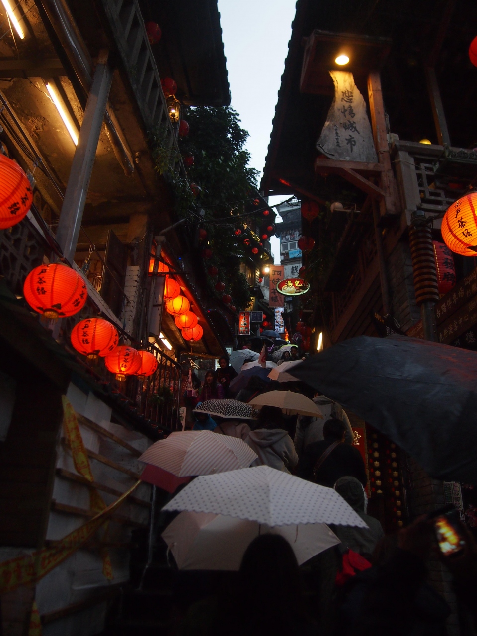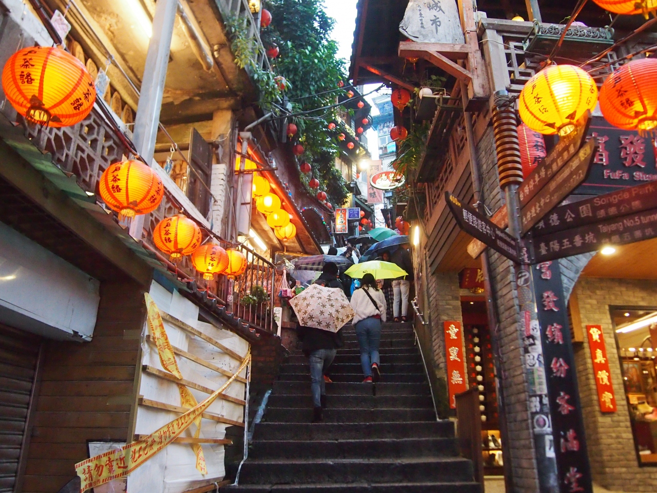 九分の写真を撮るなら、こちらのベランダから撮るのが一番です。夕方は混んでおり、入り口で待っていても特に案内がされません。他のツアーの日本語が喋れるガイドさんに、3階に上がってみて大丈夫ですよとアドバイスされ、3階に上がってみることに。すると、3階はそこまで混んでおらず、普通に広い席に案内されました。お茶のセットが一人300台湾ドル。景色代と思えば、そこまで高くないと思います。夕暮れ時になると、ベランダは日本人で撮影の人だかりに。記念の写真を収めましょう。
