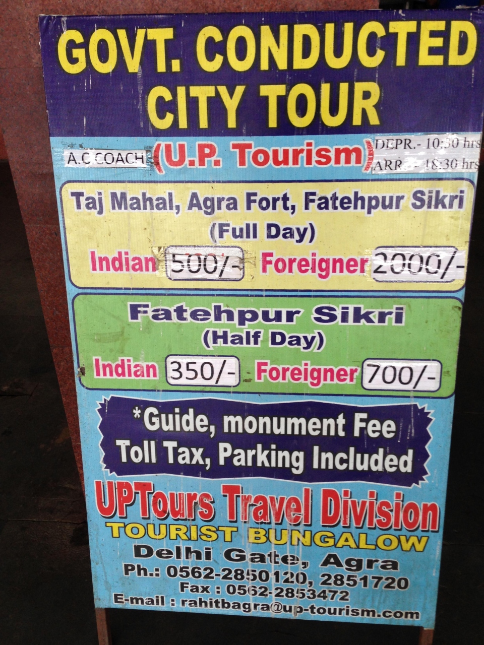 デリー6時発の特急で8時過ぎにアグラカント駅に到着。駅構内にファテープルシークリーまで行くツアーのデスクがあるとのことで訪問。このツアーですが、そのあとの10時過ぎに到着する特急列車の客を待ってのスタートとのこと。仕方ないので、2時間以上待ちぼうけ。ちなみに駅構内は冷房の効いた待合室があります。暑い中、待たなくてよかったのは救いでした。10時過ぎに再びデスクに行くと、今日は私しか客が集まらず、「ノーツアー」と言われました。2時間待った挙句にこの仕打ちは愕然としました。