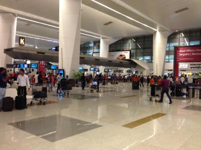 到着時はプリペイドタクシーを利用。350ルピーでした。出発時はホテルからタクシーを呼んでもらって500ルピー。朝7時のムンバイへのジェットエアウェイズの国内線でしたが、一時間も前に行けば余裕でしたね。特に混んでなかったです。