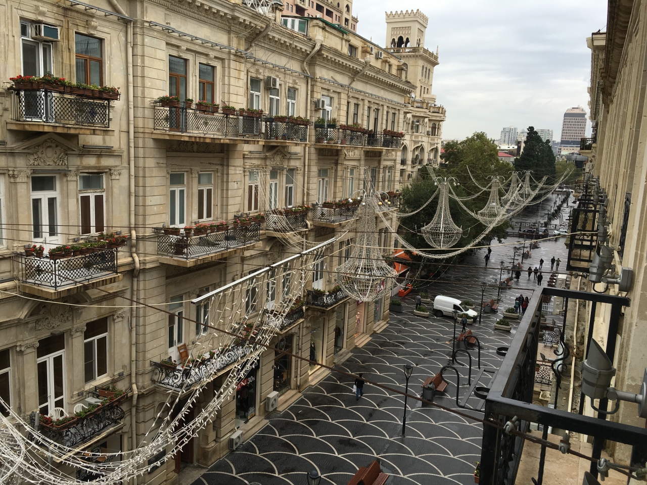 バクーの目抜通りとも言えるニザミ通りに面しています。なので、海岸沿い、旧市街などへ行くほか、飲食店、土産物屋、スーパーなども周辺に揃っており、非常に便利な立地でしたね。