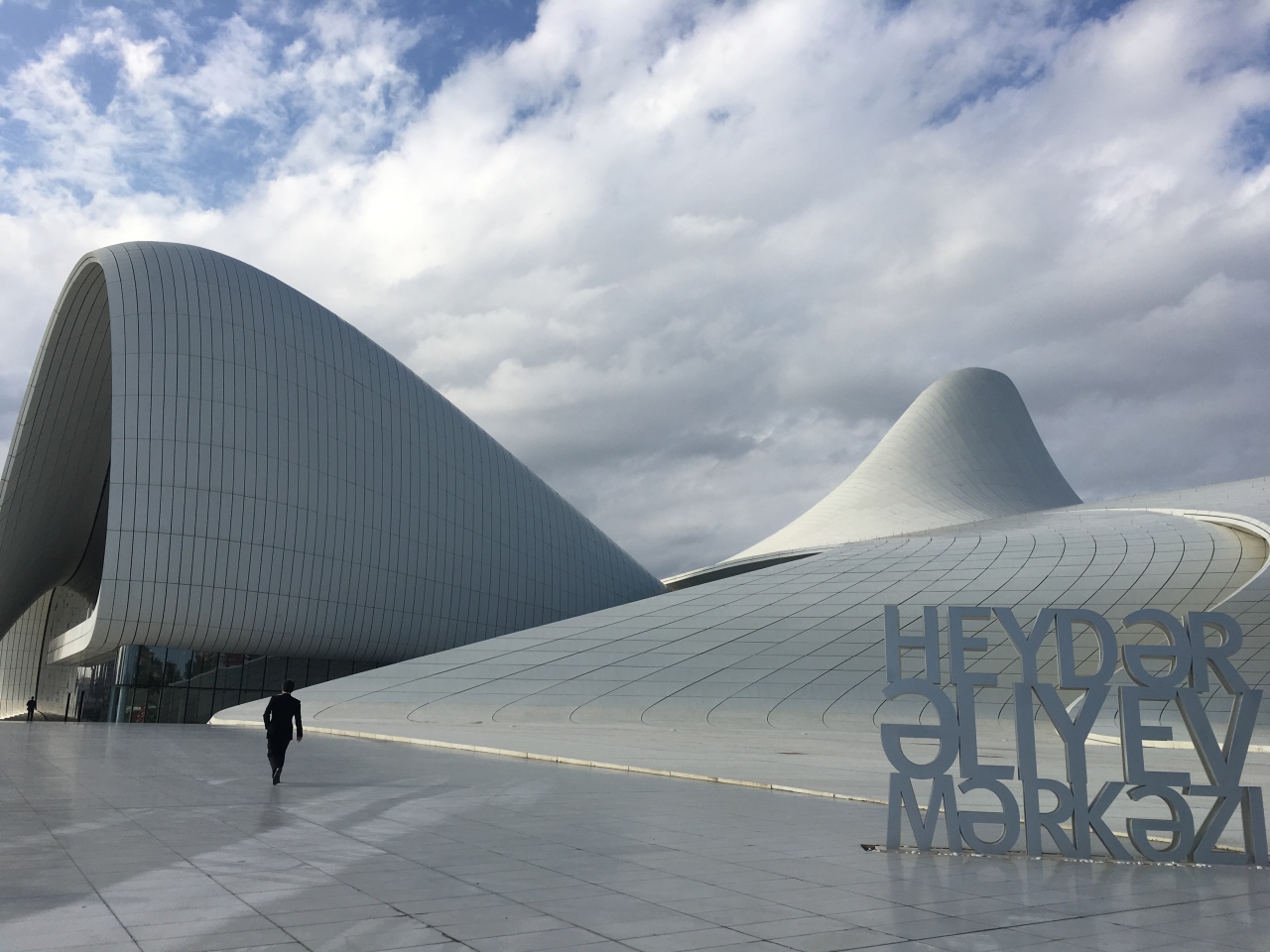 非常にユニークな、絨毯をイメージした建物をしています。写真で見て、どんなんかなと見たく、訪問しました。本当に驚くような形状をしています。バクーには他にもいろいろ面白い建物がありますが、こちらもぜひ行ってみてください。