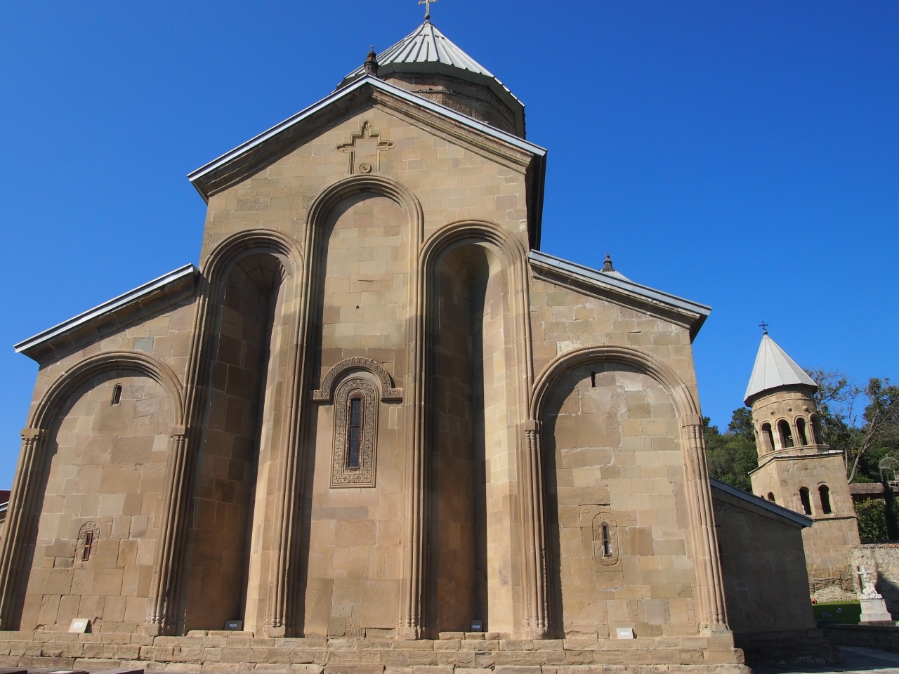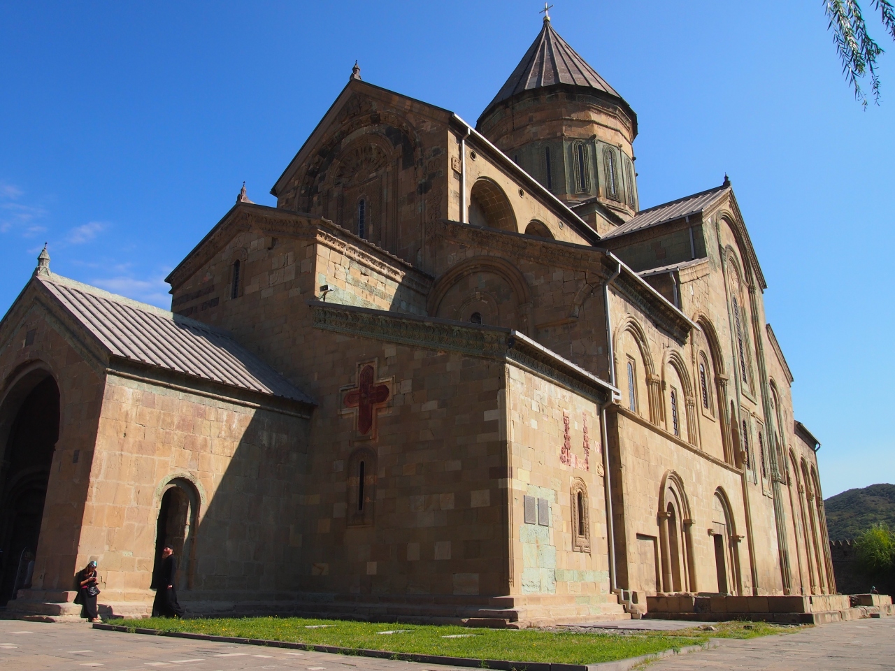 トビリシからのバスに揺られ、降り立つと、この聖堂が一番に目に入ります。当然、じゃあこれから見てみようと多くの皆さんが一番に訪れる聖堂だと思います。聖堂内ではミサをあげており、とても厳粛な雰囲気でしたので、ご注意を。敷地内にお土産屋があり、いろいろなグルジア正教関連のグッズが売っていたのでチェックしてみても良いかと思います。