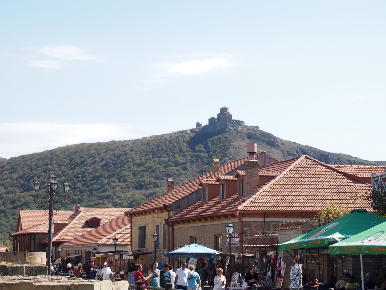 ムツヘタ行きのバスが出てます。駅を出たらタクシーや旅行会社の人が声をかけてきますが、無視してバスがいっぱい溜まっている方向へ向かいましょう。チケット売り場があるのですが、ちょっと最初は分かりませんでした。バスが溜まっている広場の、手前あたりにあります。そこで1ラリでムツヘタ行きのチケットを買い、そのすぐ目の前にムツヘタ行きのバスは停まってます。人がいっぱいになれば発車します。30分ほどでムツヘタへ着きますが、終点ではないので注意しましょう。私の場合は、運転手がムツヘタと声をかけてくれたので分かりましたが、よく注意しておいてください。