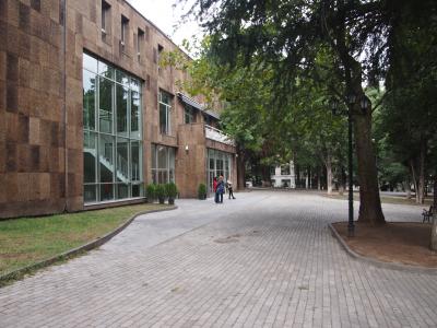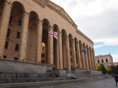 ルスタヴェリ通りを歩いていると、いきなり現れます。地球の歩き方の地図にも特に記されていないのですが、ジョージアの国会議事堂です。守衛さんなどがおり、残念ながら中には入れませんが、その立派なたたずまいは見る価値あるかと思います。