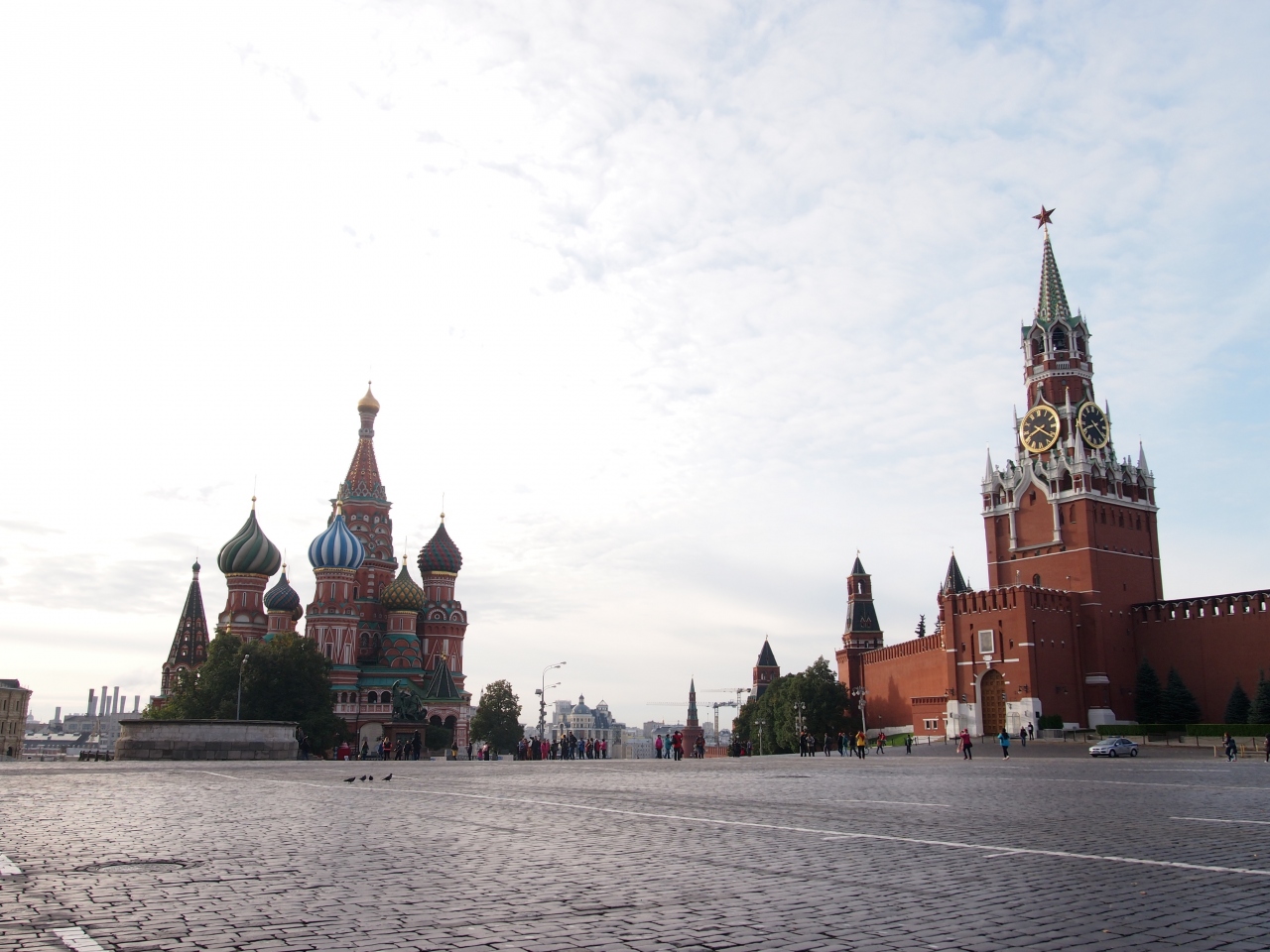 朝は8時くらいから観光客で賑わっています。落ち着いて写真を撮りたかったら、もっと早くいった方がいいかも。ただし、玉ねぎで有名なポクロフスキー聖堂は、朝だと逆光になってしまうので、それはまた考えものですが。- 旅行時期