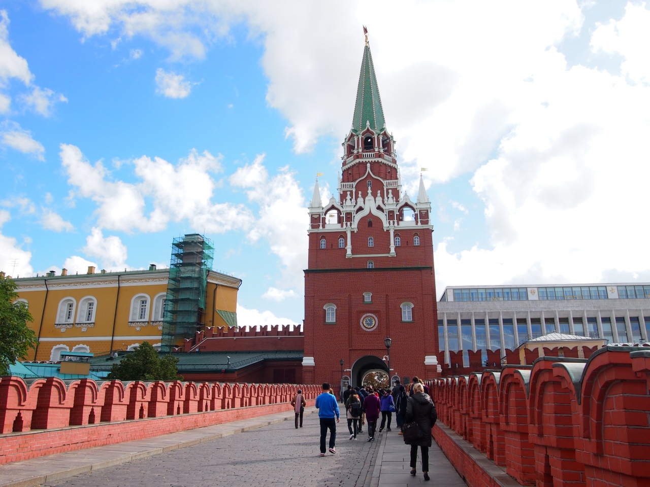 クレムリンの入り口は2つあります。一般的なのはトロイツカヤ塔からなのですが、なぜか私は、チケット売り場でチケットを買った後、入り口はどこかと探してたら、ボロヴィツカヤ塔の入り口にたどり着きました。こちらは荷物をチェックするのが一人一人なため、非常に入るまで時間がかかりました。また、一般的にクレムリンの観光ルートを逆走していく流れなので、こちらの入り口から入るのはお勧めしないですね。
