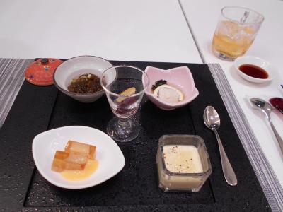 ふかひれの姿煮やカニ釜飯。他にもいろいろな料理が出ているが、それは省略...