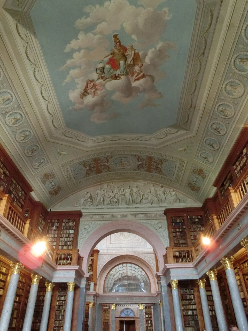 ツアーでブダペストからショプロンに移動する途中に立ちよりました。小高い丘の上に立つ、豪華ではないけれど、どっしりとした時計台、大聖堂、見事なフレスコ画とギリシャ風の柱、淡いピンク、ブルー、クリーム色が美しい図書館など、結構見応えがあります。